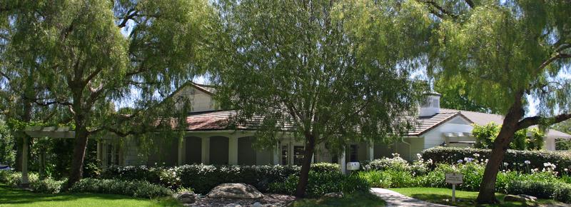 Completed in 1992, the building is a wonderful example for Rolling Hills residents of Ranch style architecture with it's playful massing, covered porches and softening trellises, large divided lite windows and crowning cupola.